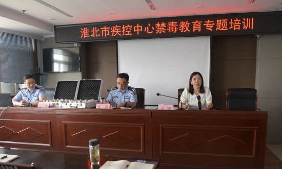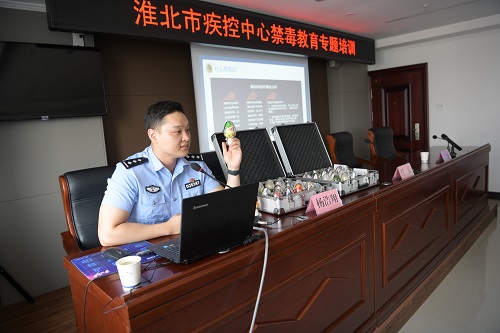 为大力推进市疾控中心毒品预防教育宣传工作,提高中心全体职工的识毒、防毒、拒毒意识和能力,营造浓厚的禁毒宣传氛围,8月4日下午,淮北市疾控中心开展禁毒教育专题知识培训。培训班邀请市公安局禁毒支队副队长任磊和警官杨浩翔授课,中心主任王敏同志主持,中心领导班子、全体职工参加此次培训。