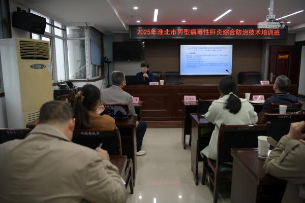 为深入贯彻落实省、市丙肝防治相关工作要求,进一步提升全市丙肝防治规划管理水平和专业人员的综合业务技术能力,加强我市丙肝防治工作的统筹规划和推进,最大限度遏制新发感染,有效发现和治愈患者,显著减少丙肝导致的肝癌和肝硬化死亡,切实减轻疾病负担,消除丙肝公共卫生危害。中心于10月15日在卫生大厦九楼会议室举办2025年淮北市丙型病毒性肝炎综合业务技术培训班。各县区疾控中心分管主任、艾防科长,丙肝治疗点/监测点的分管领导、感染科、防保科负责人以及具体工作人员70余人参会。艾滋病与结核病防治科彭爱玲主持本次培会。